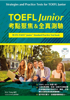 為了幫助學生能迅速了解 TOEFL Junior Test 中學托福測驗,本書參考目前北美洲中學所 採用的學習環境及課程教材來編寫,適用於所有國際語言學校中的英語學習課程,讓有志申請海外高中入學或是國內外高中入學的莘莘學子,藉由本書高分通過中學托福測驗,達成目標,完成夢想。作為全球通用的中學生英語能力評量工具,能真實反映學生在全英語授課環境中的學科及生活的英語程度,測驗成績將有助於學生了解目前自身的英語程度,量身打造個人的英文學習課程或讀物,更能有效提升學生的英文能力。以本書附贈的完整一回ETS官方全真測驗為範例,提供詳細的考點聚焦及解題策略,猶如名師在旁,貼身指導,對於如何破題、看出考點、迅速作答有精闢說明,學生不僅能迅速熟悉考試內容,更能有效率一舉戰勝中學托福測驗。