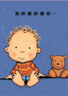 「《我好愛好愛你》在插圖上沒有出現大人的角色,而是以文字讓說故事的人,對著書上的金髮男孩和玩具熊,娓娓道出父母對孩子完整的愛。」