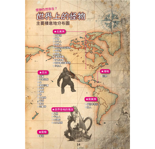 本書以世界地圖方式標記出101怪物主要出沒的地方。