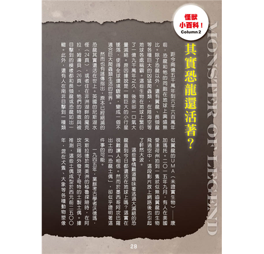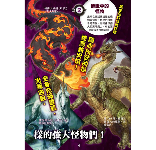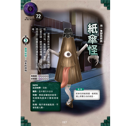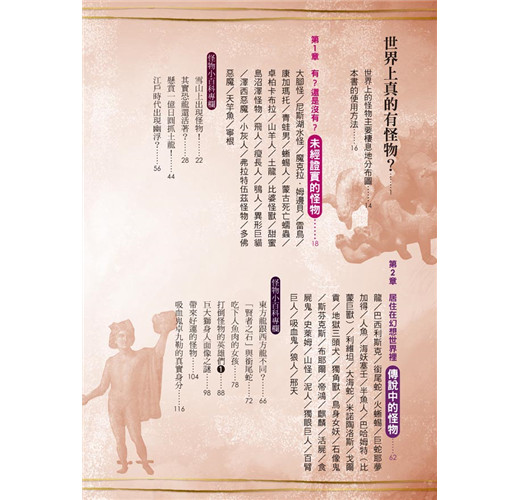 本書還附有怪物小百科專欄,詳細介紹各種關於怪物的神祕傳說與謎題,像是天狗是神還是妖怪?東方龍跟西方龍不同?……加深大家對怪物的了解!