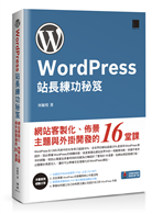 從在自己的電腦中安裝練習用WordPress系統開始,逐步探討WordPress所使用的資料庫、檔案、目錄結構等等,讓學習者能夠更清楚地掌握系統架構,為之後的課程打下基礎。同時,也教讀者如何在WordPress網站中利用HTML/CSS/Javascript/jQuery/AJAX等技巧,提升網站與使用者的互動性,讓你的網站馬上和別人的不一樣。
