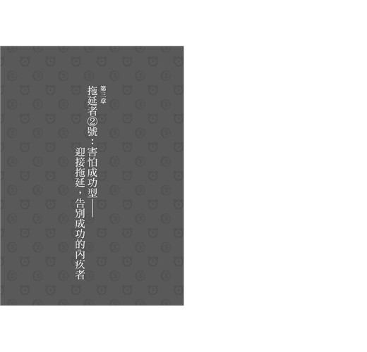 「本書所要傳達的根本訊息是:做事遲緩的傾向既非惡習,也不是品格缺失,而是一種由恐懼引發的心理症候群。」