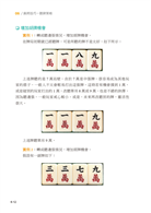 讀者可能會疑惑,當其他玩家打5萬,先前介紹要留意14萬,現在介紹要留意28萬。若其他玩家手中是455萬,那我打36萬,哇!一槍斃命。其實,沒有一張牌是安全的,書中只能介紹通則,另一個重點是當時牌面狀況,以及目前是處在開局、中局或後局,也是讀者要注意的情況。那就打別類型的安全牌吧!