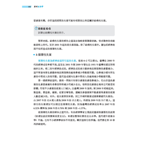 本書利用眾多實際或與讀者貼近的例子來說明本書所介紹的理論。例如,以林書豪的投籃命中率以及陳偉殷的防禦率說明邊際概念與平均概念之間的關係。另外,本書也與時事結合,說明「一例一休」新制的影響、我國實質薪資在過去十餘年間停滯的原因,以及如何從經濟的角度來看「太陽花學運」等重要的經濟現象與政府政策。