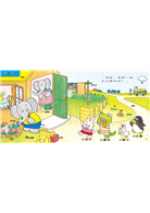 本書以小象帕歐一整天的活動來串聯,介紹了孩子們平常的一日生活,從起床、刷牙洗臉、吃飯到洗澡等,讓孩子認識並學習日常生活中的常見用品的詞語。