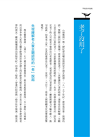 2.老化會同時影響生理與心理,過程複雜而微妙;作者屏除嚴謹深奧的醫事語言,以平易近人的口吻細數老年變化,讓變老不可怕,伴老更是不忙亂。