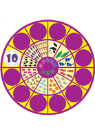 1.隨意轉動大圓盤,看圓洞內是什麼數字,再轉動中圓盤,將正確的數量對應數字。