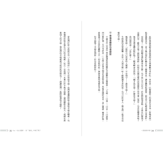 書中首度剖析各種人格特質,包含血型、十二星座和人的行為模式等更幸福的方法,以及世界七大聖哲——佛陀、耶穌、穆罕默德、老子、孔子、蘇格拉底及亞里斯多德,用生命教導世人從幸福到更幸福的睿智法則!