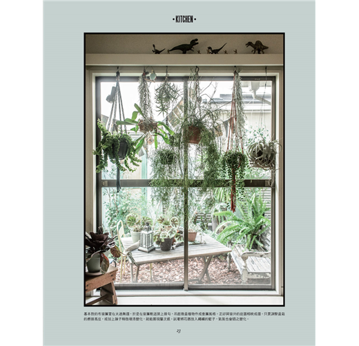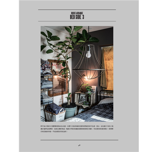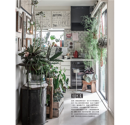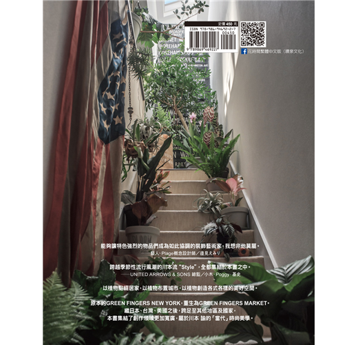 近年來,各式展覽企畫與商業合作一點一滴累積下來的心得與創作歷程,藉由新搬入的獨棟住家,成為全面展現川本 諭美學的綠藝舞台。擅長的美式風格,進一步在粗獷中帶著簡約洗練的時尚,點綴其間的觀葉植物,帶來舒緩身心的野趣。如何利用收藏小物打造屬於自己的世界?如何透過袋物與書本點綴盆栽?如何善用狹小的閒置空間展現獨創巧思?藉由實際的布置畫面、陳設的重點解說,打造不同風格的效果。只要從小技巧開始著手改造,抓住布置要點,你也能擁有人氣園藝師的綠藝空間!
