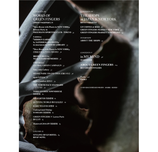 在紐約站穩腳步的Green Fringers NEW YORK,重生為Green Fringers MARKET。全新挑戰的概念旅社GF Hotel,提供了完整呈現川本式lifestyle的展示空間。熟悉的台北街道,在川本 諭的巧手布置下,激盪出帶著懷舊感的新潮氣息。繼日本、台灣、美國之後,人氣園藝師川本 諭跨足至其他地區及國家激盪新視界,本書集結了創作領域更加寬廣,屬於川本 諭的「當代」時尚美學。