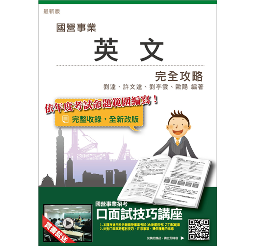 《英文完全攻略》由三民輔考權威名師依憑多年教學經驗與實務資歷戮力編寫而成,透析各大詞類與句型,完整涵蓋英文考試範圍!獨家公開各類題型解題技巧,掌握答題要訣,秒速得分快又準!