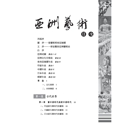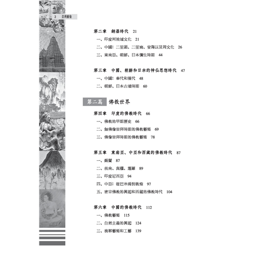 此書論述亞洲從古到今的藝術主流,著重於重要的藝術史遺蹟。這些史蹟可以幫助我們解釋歷史上、藝術上和文化上的各種現象。全書共分十六章。