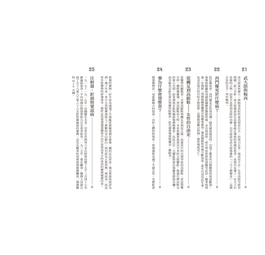 作者用通俗流暢的文筆撰寫本書,讓你在熟悉的文史領域中,發現你所不知道的、與醫學有關的另一個面向,而這些可能很多醫生跟歷史學家都不一定知道。書中所寫的一些看似趣味盎然的小故事,實則處處流淌著醫者的人文情懷。