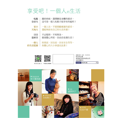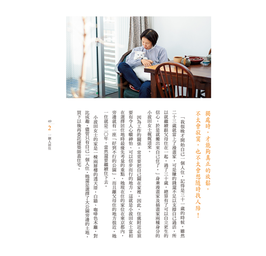 這本書,很日本。討論獨居者面臨的處境時,檢視危機與建議日後生活規劃完全立基於日本社會的生活經驗,也另外經由採訪,提出各自不同專業領域的建議。例如遇到地震時的準備與因應方案、如何設定或購買居家保全服務,如何買保險,要租屋或買屋划算等等。貼心之餘,更期待這樣的一本書,可以出現台灣版。看見台灣女性的各自精彩,更讓我們體會在地生活的美好樣貌。