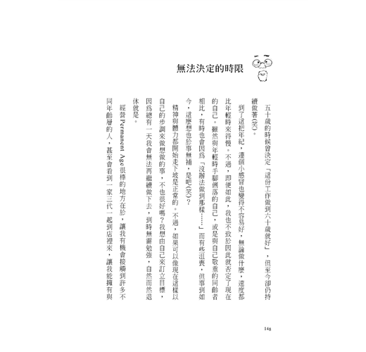 無需預設退休年限,但要做好漸進退出的準備:以自己的步調來做自己想做的事,當無法再繼續下去時,無需勉強,自然而然退休就是。