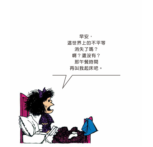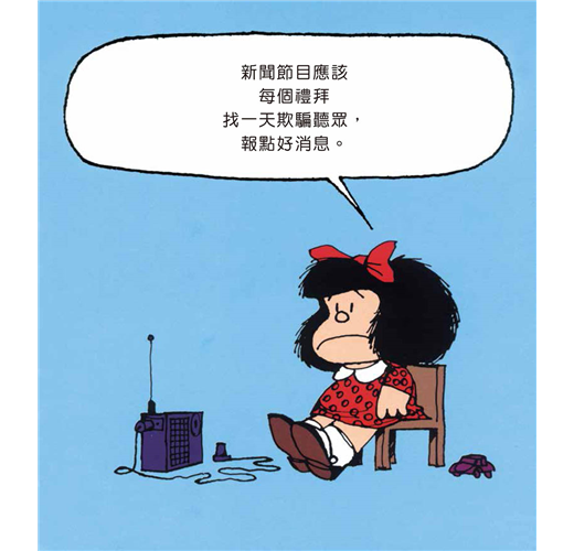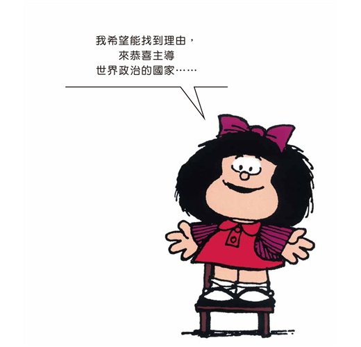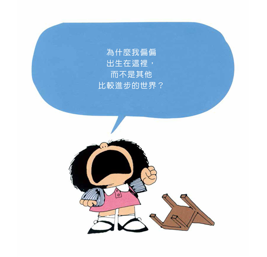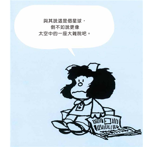 ★「為什麼我偏偏出生在這裡,而不是其他比較進步的世界?」6歲阿根廷小女孩瑪法達在《娃娃看天下—地球還好嗎?》裡,犀利、真誠而直接的提出問題,對公理與正義的反思和疑惑,政治運作和社會公平的各種思考。