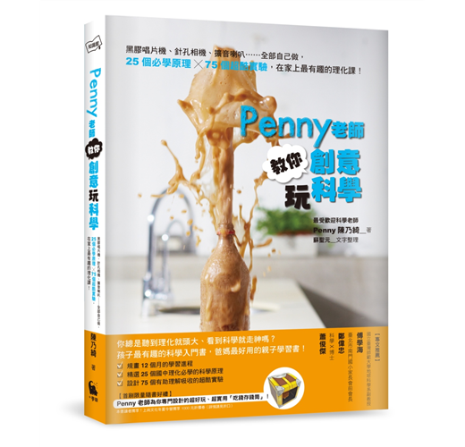 在還沒有認識Penny老師之前,我家的小孩在家中很喜歡看YouTube的科學影片,樂此不疲,常常是一部接一部一直看,有一天我從孩子口中知道了酷酷兄弟和Penny老師,以及他們的科學實驗的訂閱率和網路上的高人氣,也跟著孩子看了許多有趣的影片,結果有趣的事發生了,想不到孩子眼中的Penny老師和我同一年就讀臺北科技大學EMBA,不僅如此,由於擔任家長會長的我,因緣際會下邀請Penny老師和所領導的團隊到臺北市南門國小主辦科學闖關活動,當時好多小學生私下問我那是Penny老師嗎?可見她的高人氣。這次有幸拜讀孩子們的偶像Penny所寫的新書,隨手一翻不得不佩服她用白話淺顯的實驗方式,像是用三根火柴棒吊起水瓶,解釋國中理化課程中平衡力系的原理,我回想我對國中理化的概念就是「背多分」死背的年代,還記得當年臺上老師的說明:「物體未被拉動之前的摩擦力稱『靜摩擦力』,摩擦力等於外力,接觸面愈光滑,摩擦力愈小;物體愈重,摩擦力愈大⋯⋯」還有加速度與牛頓第二運動定律是隱藏的概念。現在的教育趨向多元,這本書可以引起我和小孩科學實驗的好奇,進而建立物理化學的基本觀念。--臺北市南門國小家長會前會長鄭偉忠