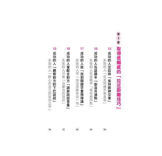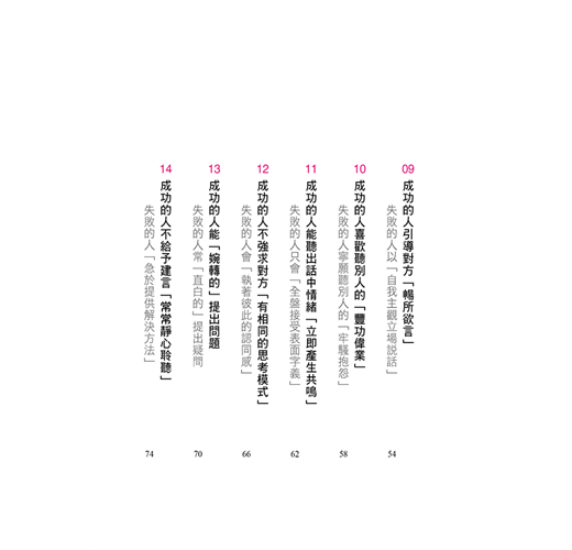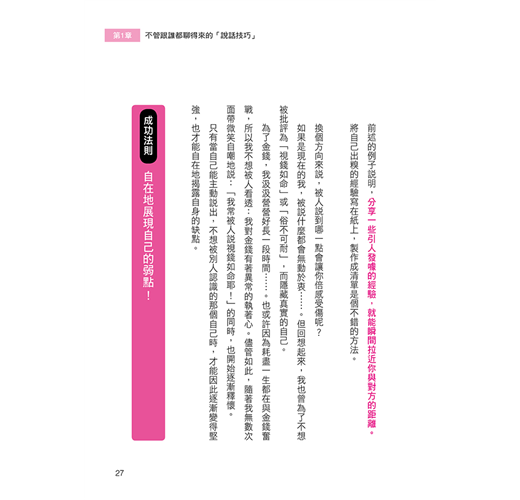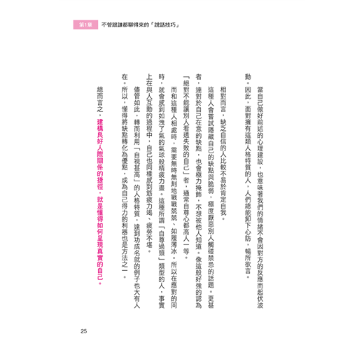 如果現今的你,正因為缺乏良好的談話技巧,而陷入與上司、下屬或伴侶間的相處苦境中,本書確實能為你點亮一盞指引明燈。原因在於,本書集結近三十年來,我為了改變自己而學習運用的所有技巧。