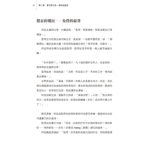 為什麼維基百科中「溫水煮青蛙」的實驗大都失敗?與「溫泉燙青蛙」有什麼不同?不同點在於「是否自願」。「溫水煮青蛙」裡,青蛙是被迫待在鍋子中,緊張的觀察周遭的變化,一感到危機就跳走。阿星與溫泉青蛙卻是自願跳入溫泉,腦袋放空,享受當下,隨波逐流。