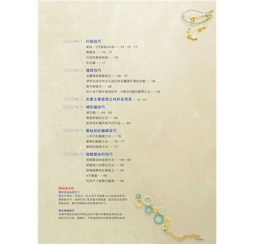 ◎從穿線、串接、打結到梭織蕾絲等基本技巧,以step by step的方式,讓您清楚一目了然,不需要老師親自教學,您也可以看著步驟圖輕鬆完成。