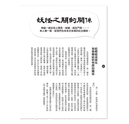◆每隻妖怪皆附精心繪製插圖,融合視覺效果與文字想像,給你最全面的妖怪體驗