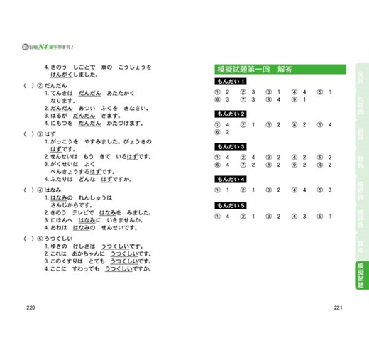 每回模擬試題均有解答與詳細的試題分析解說,幫助考生找出盲點,完全精通N4程度的日語。