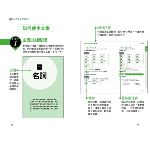 1.主題式總整理,一網打盡N4必考單字、語彙!