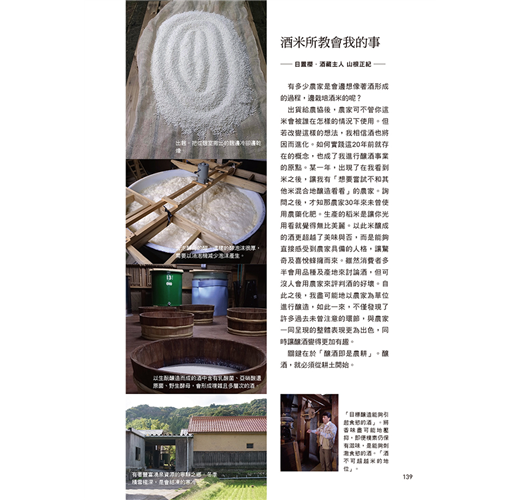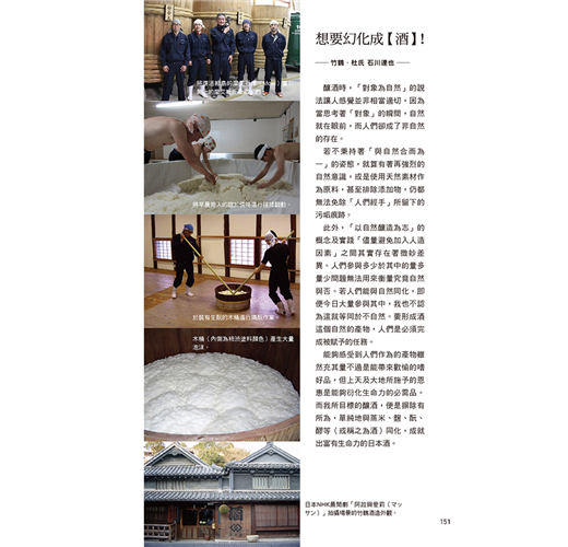 多數釀酒人,終其一生為日本酒投入畢生熱血,並嚴格為品質把關。如果有機會品嚐到書中所嚴選薦舉的日本酒款,請不妨細細品味箇中深韻。