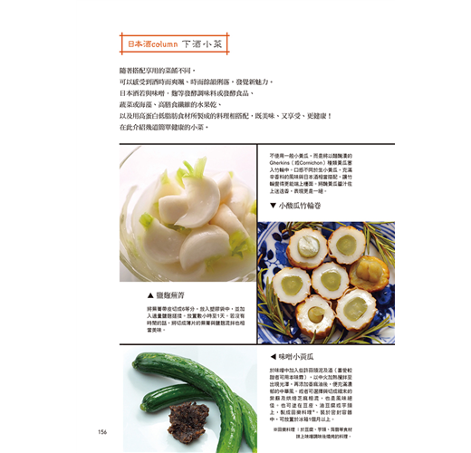 除了推薦日本全國各地的嚴選酒藏與代表酒款之外,本書還收錄多達20則日本酒相關的小專欄,為讀者額外介紹日本酒相關小常識,其中1則還收錄了幾道可簡單完成的美味下酒菜,搭配日本酒最是速配!還有還有,「可以吃下肚的美味酒器」介紹,更是不容錯過!(詳情請參閱本書專欄之「酒就要喝純米酒,燗飲(熱飲)讓日本酒更登峰造極」)