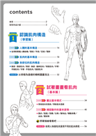 第一章,帶領讀者先認識人體的基本構造與各部位的肌肉構造,以骨骼為基礎畫出概略圖。