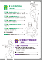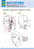 第三章,練習掌握男女及各年齡層的肌肉特徵,畫出差異,加上悲傷、憤怒、緊張等情緒,也可以誇張方法表現。