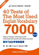 「高中7000字測驗題庫」以大考中心公佈的「高中常用7000字」為範圍,完全依照「學測」與「指考」詞彙題的命題趨勢,精心設計40回測驗。每一回有10題詞彙測驗及5題慣用語測驗,每條題目均有中文翻譯及註釋,能節省讀者查字典的時間;每個選項還附有詞類變化、同反義字、字根分析、背誦技巧、常考片語,或例句說明等補充資料,讓讀者加深印象,徹底了解每個單字的用法。每做完一回之後,一定要徹底檢討,如此字彙實力必能在短時間內大幅提升,考起試來會更加得心應手。
