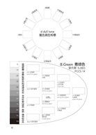 氣質高雅等等,依照標示的色彩號碼貼上,完成作業後實務需要配色時,可以參考運用。