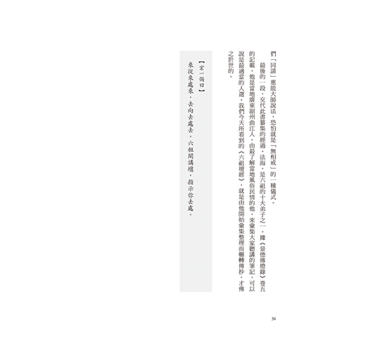 《六祖壇經》是一部禪宗創始人惠能演講佛法的紀錄,也是中國人所寫的佛教著作中,唯一被尊稱為「經」的典籍。它對唐宋以後的中國歷史文化,產生了既深且廣的影響。