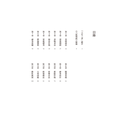 六祖惠能是中國佛教發展史上一位重要的關鍵人物,也是中國佛教史上影響最大的宗派禪宗的創始人。《六祖壇經》是惠能演講佛法的紀錄,言簡而意賅,仔細體會,必能增進智慧和見識;其中偈語優美雋永、意義深遠,更值得再三涵詠玩味。