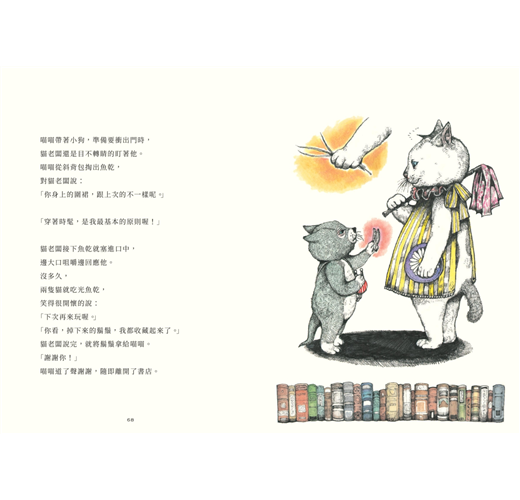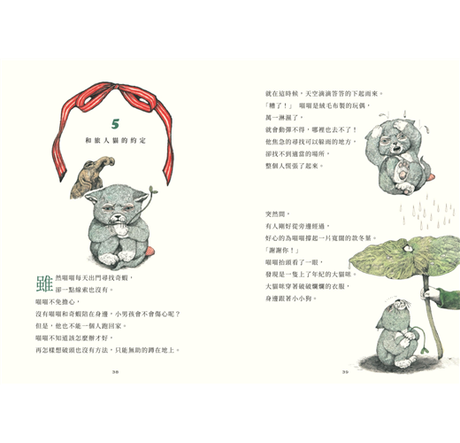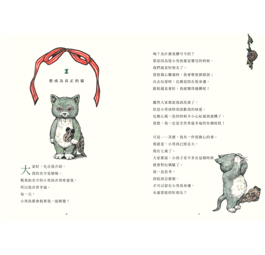 原本以為單純是玩偶貓變成真貓的故事,沒想到「喵喵」在旅程中遇到的每一隻貓咪,都讓讀者像是閱讀另一篇故事般,享受到不同精采的樂趣。