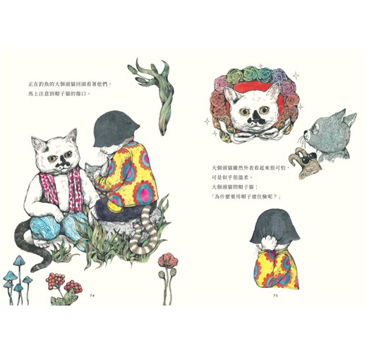 注意到Higuchi Yuko作品的人,應該是被她作品裡詭異可愛的腳色與細緻華麗的畫工所吸引。全彩繪本《世界上最棒的貓》,光是拿著的手感就像收藏品般讓人愛不釋手,除了每一頁可欣賞到Higuchi Yuko的插圖之外,故事更是意外的好看極了!故事的主人翁布偶貓喵喵,希望心愛的小主人可以永遠愛他,所以想變成一隻真正的貓。喵喵得知蒐集貓的鬍鬚可以變成真正的貓咪,於是帶著古代生物玩偶朋友奇蝦,踏上「貓咪版木偶奇遇記」的冒險之旅。