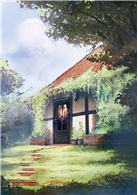 慢慢地走了近三十分鐘後,在道路前方看見了塔列蘭咖啡館。穿過兩棟住宅屋頂形成的隧道時,真子形容「好像祕密基地」,相當有趣,確實像是喜歡故事的真子會有的想法。