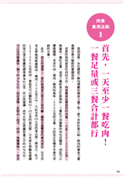 以「肉為主,蔬菜、飯與湯品三者間如何正確搭配」的飲食模式,與最有效的「食用順序方程式」,讓你營養均衡味覺滿足卻不會發胖。