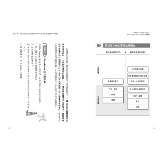 案例: Facebook察覺對使用者有價值的資訊,是他人的讚美和留言,於是提供「按讚」的功能,聚集16億會員,廣告費收入創造出十兆的企業價值。