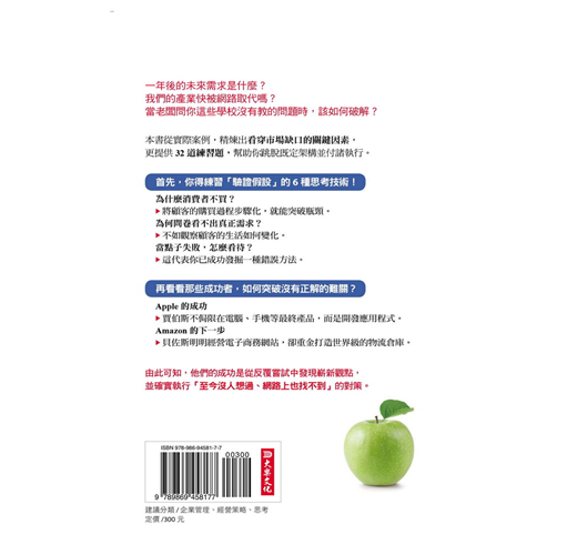 本書從實際案例,精煉出看穿市場缺口的關鍵因素,並提供32道練習題,幫助你跳脫既定架構,能夠自由轉換觀點並付諸執行。