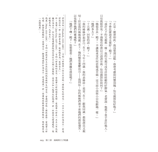 而且,不管轉向哪兒,他似乎都可以看到遭砍下的頭顱在空中飛舞,記憶中那位偉大的諾福克公爵的臉孔,以怨恨的眼神望著他。