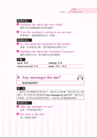 通常此問句會應用在辦公室中。當你外出回來後,欲知是否有人來電時,即可問你的同事或助理Any messages for me?或者,當你在外回家後,也可用此句詢問你的家人,是否有人來電或留話給你。