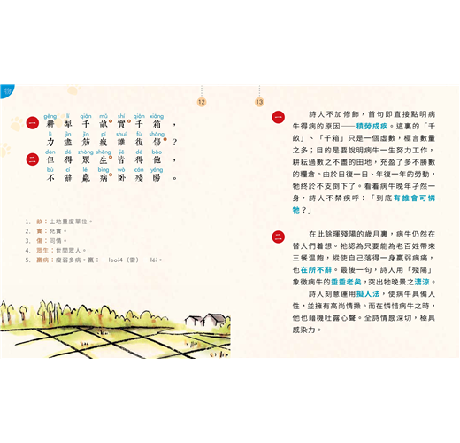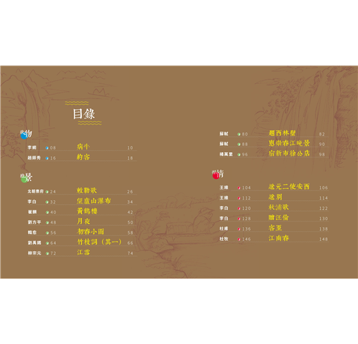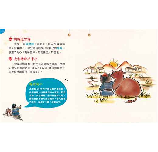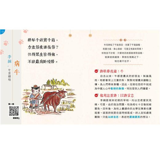 活學:每篇含作者簡介、原文、注釋、拼音、成詩背景、重點題旨、並以學童能夠掌握的故事性語言作賞析及舉出生活化例子,配以可愛的古裝貓插圖,拉近古詩與孩子的距離。