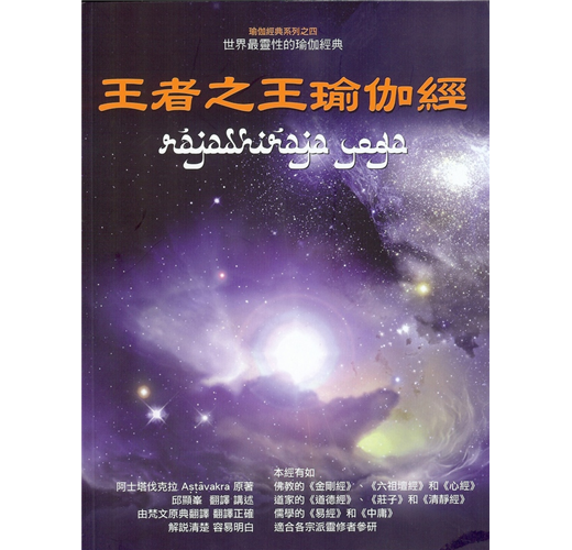 《王者之王瑜伽經》是世界上最靈性的瑜伽經典,此經有 如佛教的《金剛經》、《六祖壇經》和《心經》;道家的《道 德經》、《莊子》和《清靜經》;儒學的《易經》和《中庸》。本書清楚明白地告訴我們:「能了知真我自性即至上本體者,知道『有與無』只是一種妄執」;「放下所有的一切, 即使冥想亦要放下,不要執持任何一切。你的真我自性確 確實實是自在解脫的,……」;「你可能宣說過或聽聞過各 種經典許多次,儘管如此,除非你能遺忘所有的一切,否則你無法安住在你自己裡面。」