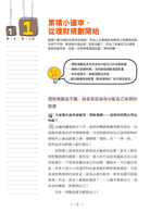 藉由編製「資產負債表」、「收入支出狀況變動表」、「全生涯現金流量表」,適時調整理財策略,以「目標順序法」混搭「目標並進法」達成各階段目標。梁老師一一列舉股票、基金、ETF、外幣等各項投資工具優缺點與注意事項,幫你累積小利換大利!