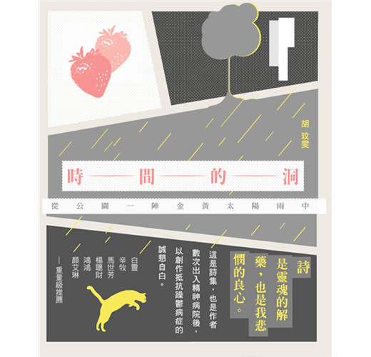 當她說〈我的憂鬱像眼球一樣跟著我〉時,她說出的是多少憂鬰患者不知該如何去除低潮的心情?當她說〈我背著一隻負傷流血的象〉,她說的是壓在心頭無可卸除的沉重,她說的是一大群如她背負如山之人。當她說〈時間的洞〉時,光由標題即知,此「洞」是自挖的也可能是他者挖的,既是藏也是埋,看似再也前進不了的心境,卻是可長出玫瑰的所在。常人當然很難想像如此心境是何種心境,但這樣的患者無處不有,這世上何止千萬。胡玟雯寫的因此不只是她個人,她的書寫觸及了幾個層面:兒童心理、家庭教育、親子關係、婚姻問题、精神醫療方式、社會保險福利問题、遺傳與基因與營養問題等等的複雜關係。她說的是歷代以來不斷發生、一直在發生的地球上一大群特殊精神疾患者產生的原因、過程、和他們被對待的方式。