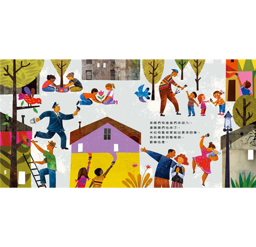 這是以一個真實故事為創作基礎而寫成的美麗繪本,關於藝術走進社區、改變社區的動人故事。我想這本繪本和這本繪本背後帶出的用藝術改變社區的行動,可以給台灣目前也正在時興的彩繪老社區風潮一些啟示。