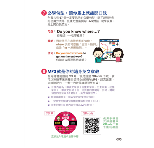 利用隨書附贈的CD片,或是透過QRcode下載,就可以聆聽專業美籍老師精心錄製的MP3,認真跟讀,訓練聽說力,一對一的教學讓學習更有效。