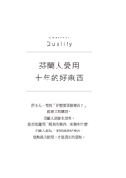 ◎作者用細膩的文筆,談談芬蘭人對自然、時尚、金錢、工作、時間或運動的看法。